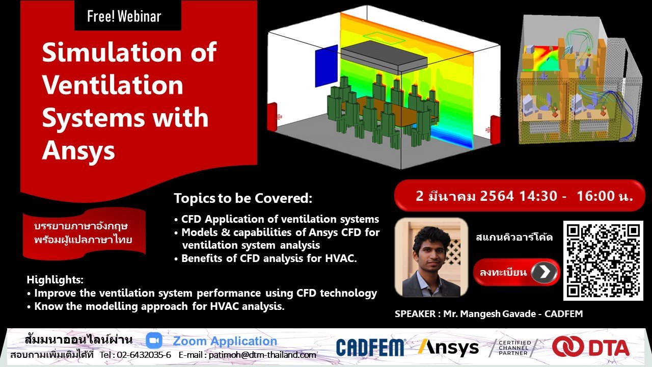 ขอเชิญเข้าร่วมสัมมนาออนไลน์ Webinar: Simulation of Ventilation Systems with Ansys