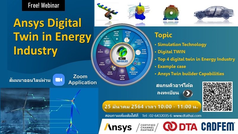 ขอเชิญเข้าร่วมสัมมนาออนไลน์ Webinar: Ansys Digital Twin in Energy Industry